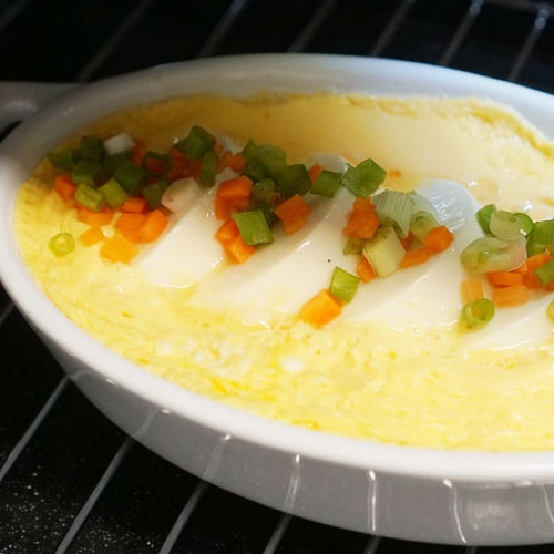 - 조리 시 주의사항: 처음 3분 정도 조리한 후, 가운데를 찔러 보아 묻어 나오지 않으면 완성이므로 참기름이나 통깨를 제공해 맛을 더할 수 있습니다. 만약 부풀어 넘칠 것 같으면, 그라탱 용기에 계란물을 너무 많이 담지 않도록 주의하세요.
