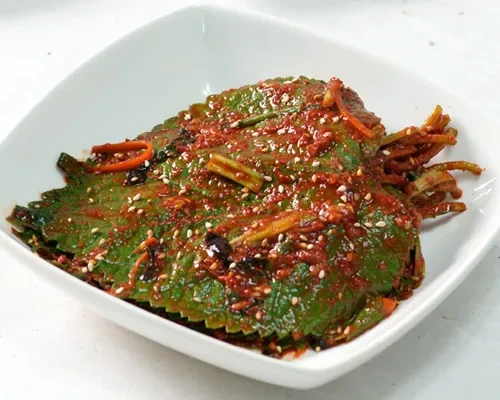 - 깻잎김치: 신선한 깻잎을 활용하여 고추가루, 마늘, 젓갈을 섞어 간단하게 버무리는 김치입니다.