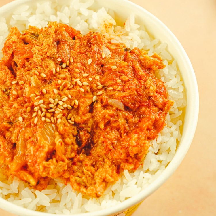 마지막으로 소개할 메뉴는 김치참치덮밥입니다. 간단하면서도 든든한 한 그릇 요리로, 김치와 참치를 조화롭게 넣어 풍미를 더한 메뉴입니다.