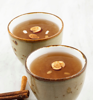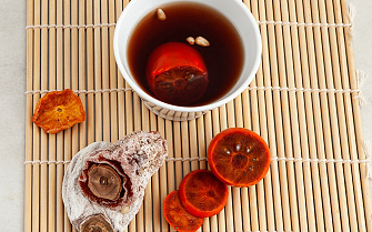 수정과는 주로 곶감을 첨가하여 더욱 풍미를 더합니다. 곶감은 수정과의 단맛과 더불어 특유의 향을 더해줍니다.