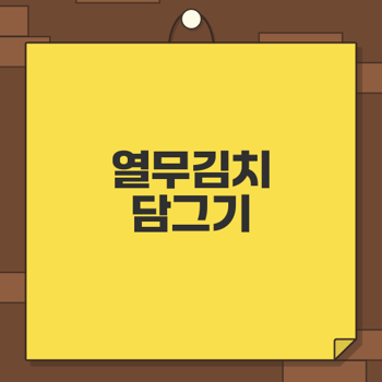 열무김치는 여름철 필수 반찬입니다. 맛있고 쉽게 담그는 방법을 알아보세요.≡ 목차 열무김치 재료 소개 필수 재료 및 비율 대체 가능한 재료 신선한 열무 고르는 법 비법 양념 만들기 양념 레시피 비율 간편한 양념 만드는 법 더욱 맛을 높이는 팁 열무 절이는 시간과 방법 적절한 절임 시간 열무 절이는 최적의 조건 습도와 온도의 Importance 김치 발효 관리 비법 적정 온도와 보관 방법 발효 도중 체크리스트 부패 방지 수칙 맛있게 먹는 방법과 활용 레시피 열무김치 비빔국수 김치찌개 활용법 다양한 요리와의 조합 같이보면 좋은 정보글! 집에서 맛있게 만드는 간단 요리 오이지 담그는법으로 여름 반찬 완벽 정복하기 여름철 음식 보관법과 식중독 예방의 중요성 워터밤 2..
